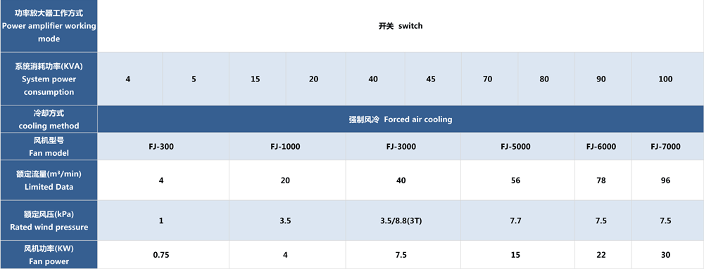 功放采用性能可靠的MOSFET和IGBT模塊,具有很高的穩定性和可靠性。