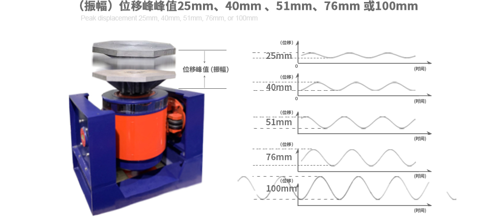 **** 位移可選76mm或100mm.uDisplacement peak-to-peak value of  76mm or 100mm.
